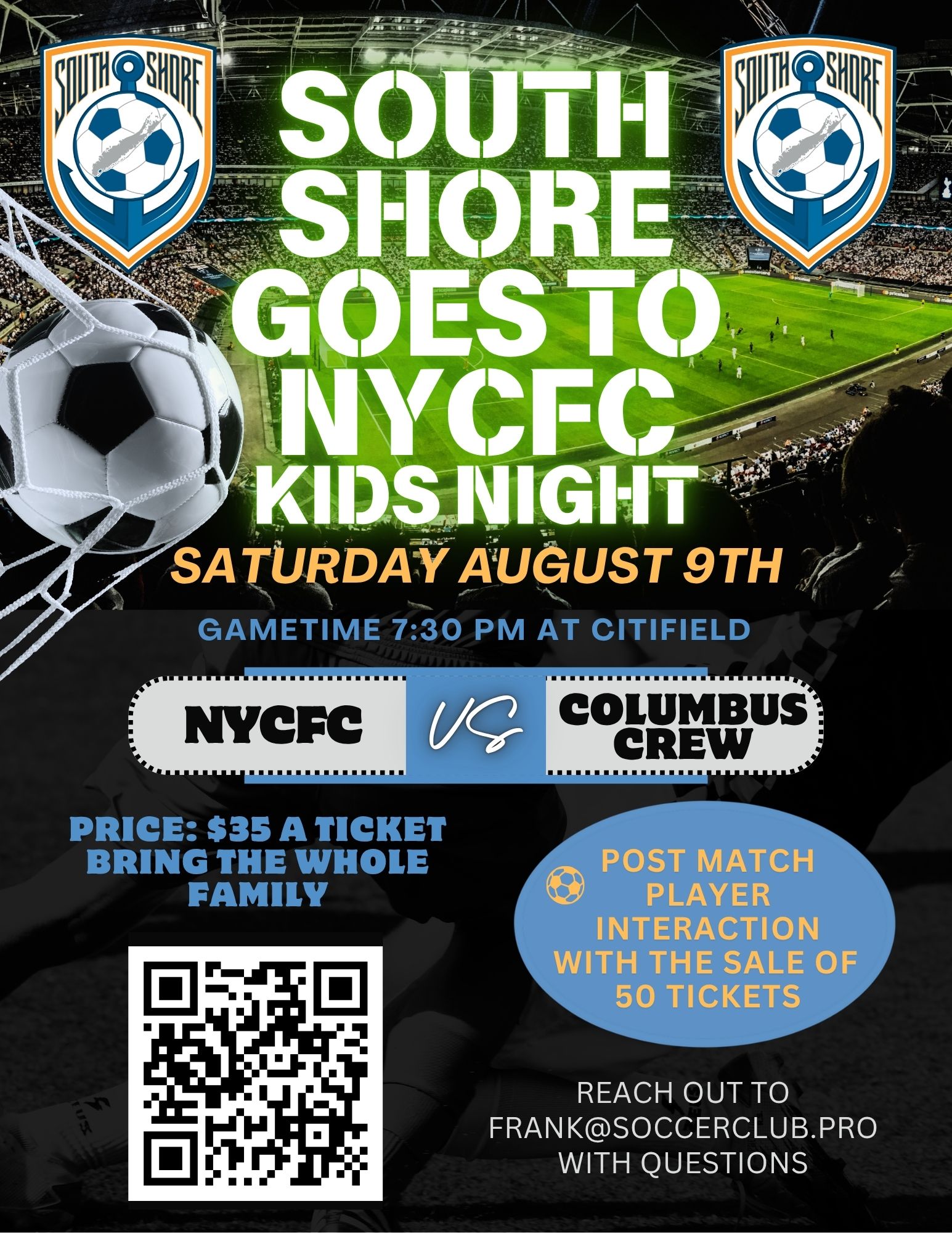 South Shore is proud to offer a special Kids Night at Citi Field, where our very own New York City FC will take on Columbus Crew!